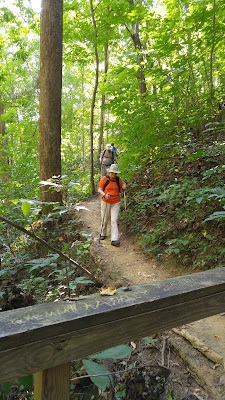 Our last day in SC we decided to check out a waterfall close by. Brochure said a 1.3 mile hike to it, so we figured it would be a nice walk. Which it was, just a little more strenuous than we thought it would be.